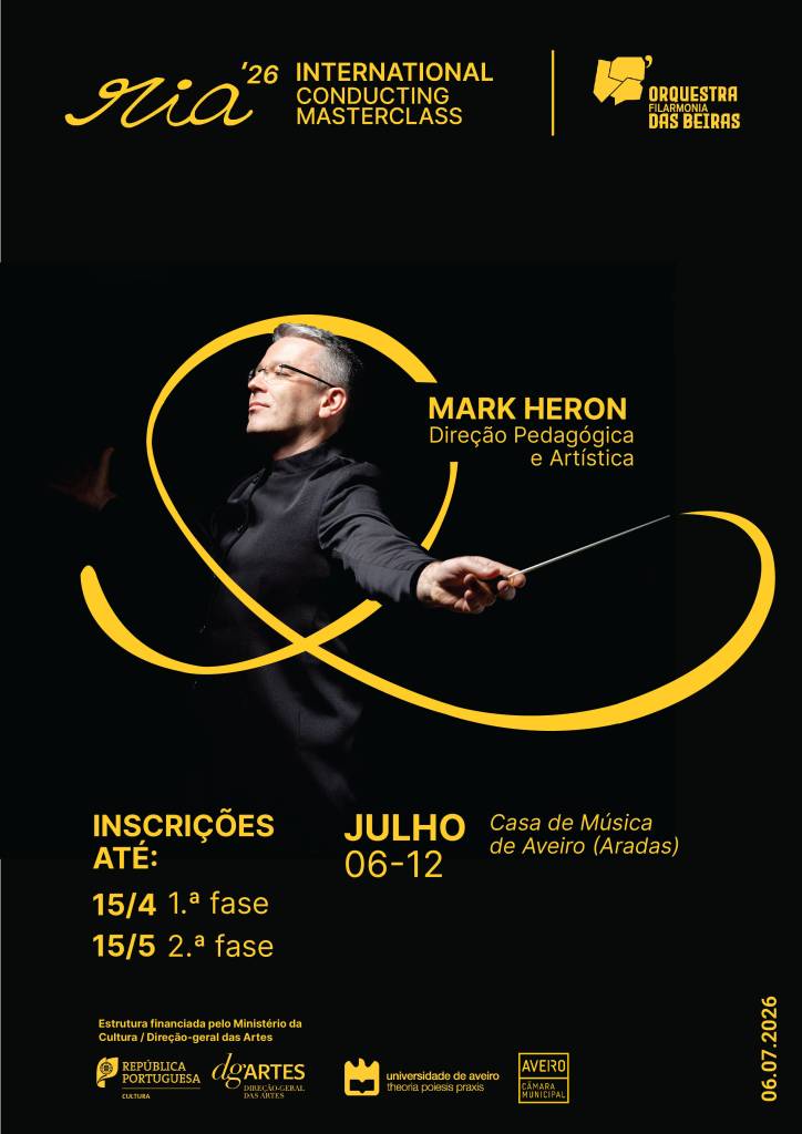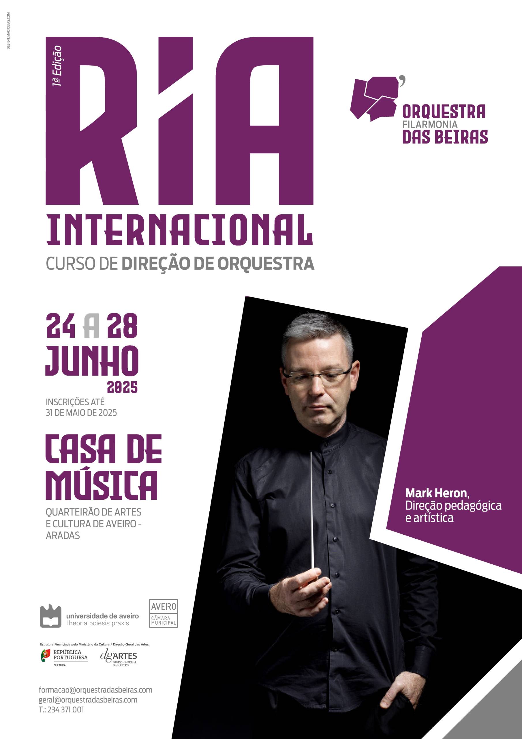 A Orquestra das Beiras organiza, sob a orientação do Maestro Mark Heron e em parceria com a Universidade de Aveiro, a 2.ª Edição do RIA Internacional – Curso de Direção de Orquestra. Decorrerá de 6 a 12 de julho de 2026 com apresentação pública final no Auditório Renato Araújo da Universidade de Aveiro e no Auditório do Centro Cultural Gil Vicente, no Sardoal. Este novo formato dará continuidade ao excelente trabalho desenvolvido pelo Maestro Ernst Schelle, nas várias edições do CIAO – Curso Internacional de Arte Orquestral. Este Curso Internacional temcomo principal objetivo contribuir para a valorização técnicaartística de todos aqueles que pretendam aprofundar os seus conhecimentos na arte da Direção Orquestral, quer sejam jovens maestros, estudantes de direção ou professores.