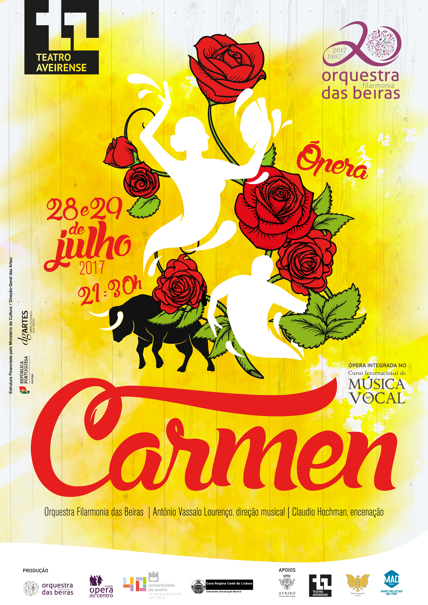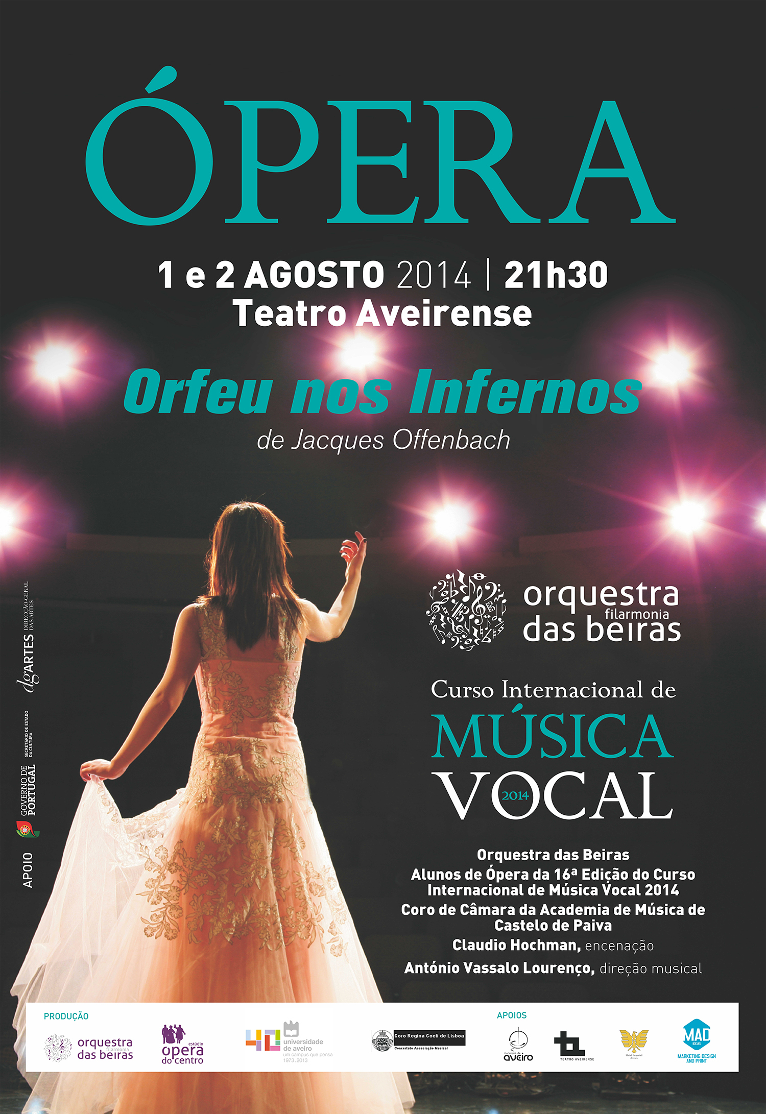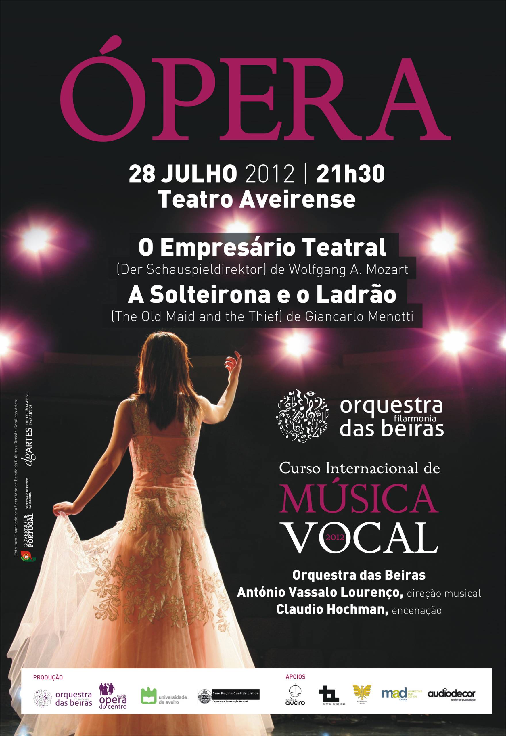 A récita de Ópera terá lugar no Teatro Aveirense, em Aveiro, no dia 28 de julho e no Concento de Cristo, em Tomar, no dia 31 de julho e contam com a colaboração da Orquestra Filarmonia das Beiras.