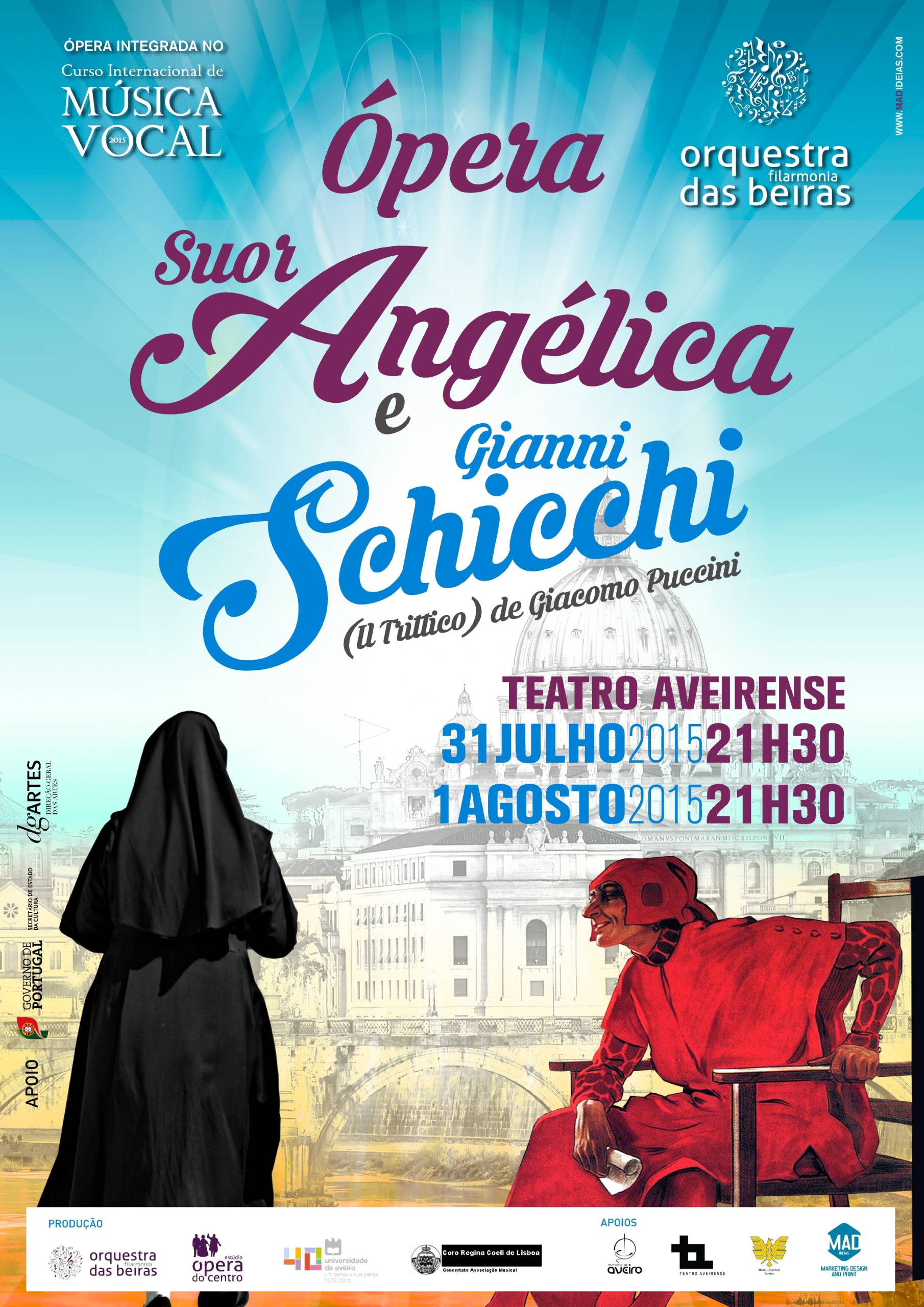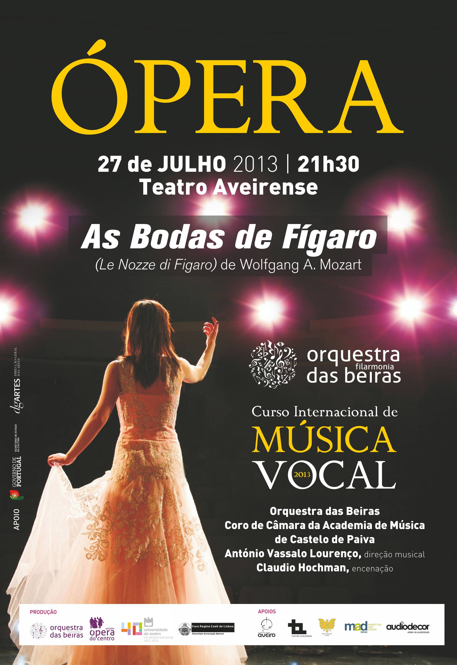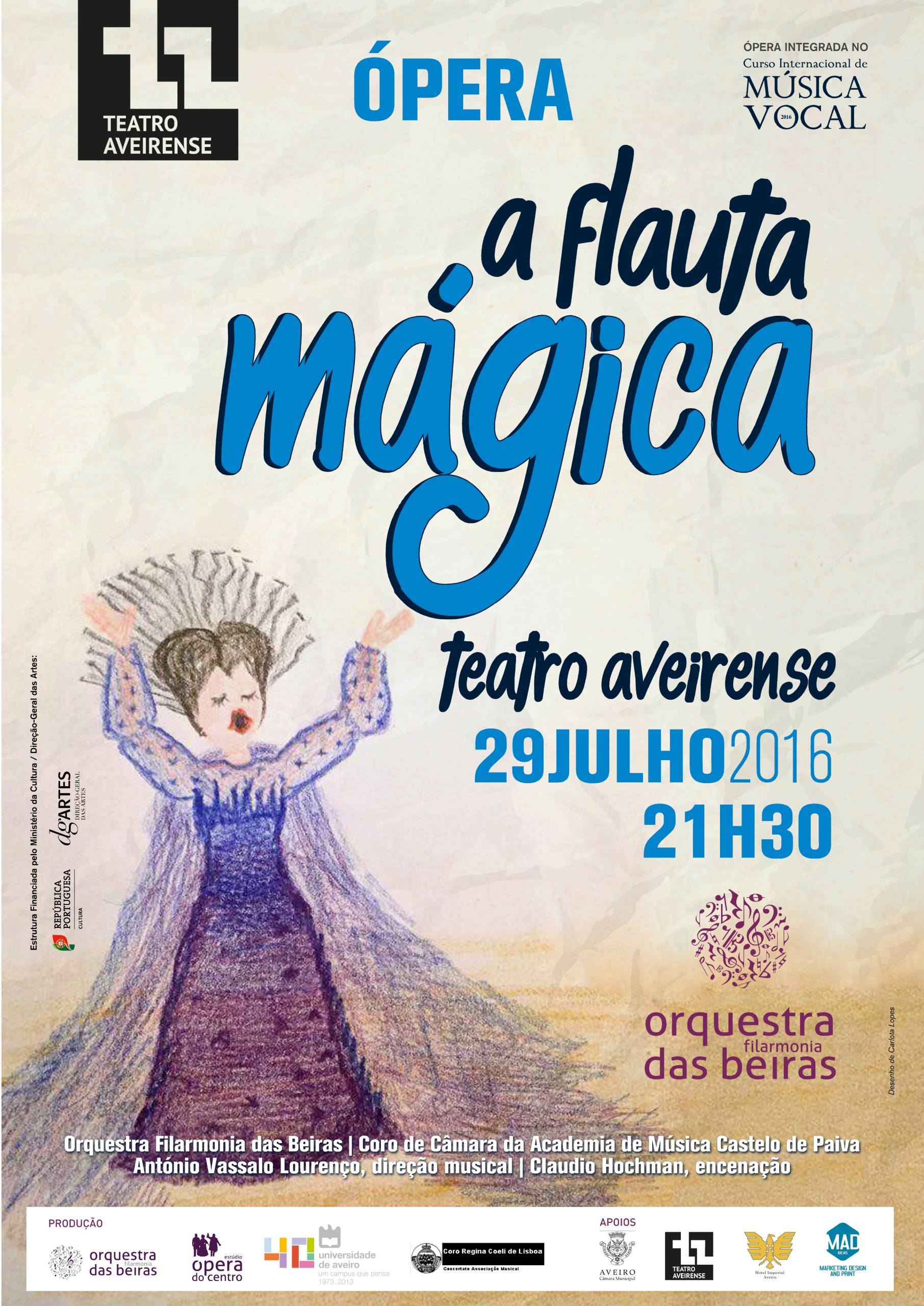 A récita de Ópera terá lugar no Teatro Aveirense, em Aveiro, no dia 28 de julho e no Concento de Cristo, em Tomar, no dia 31 de julho e contam com a colaboração da Orquestra Filarmonia das Beiras.