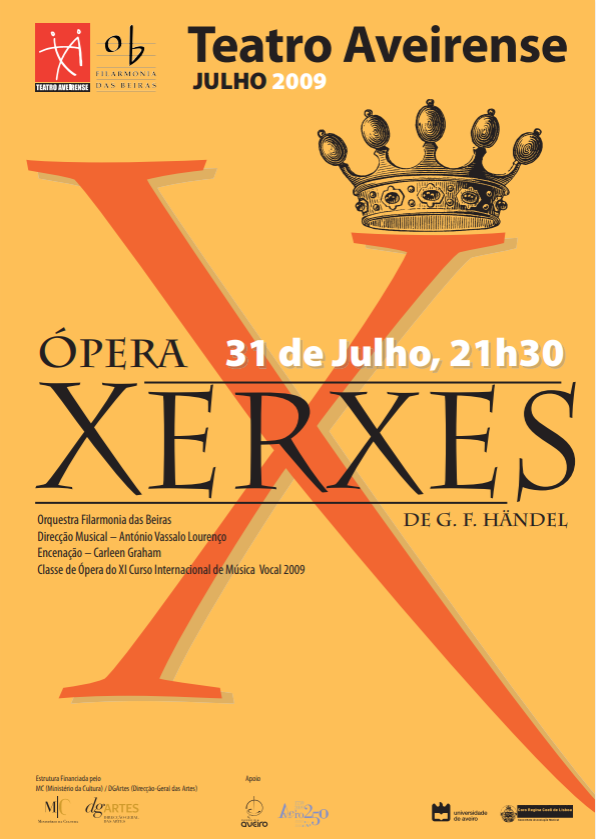 O curso de Ópera é dirigido a um número limitado de cantores, selecionados por audição ou gravação, e tem em vista a montagem e apresentação da ópera “Xerxes” de Georg Friedrich Händel (1685-1759).