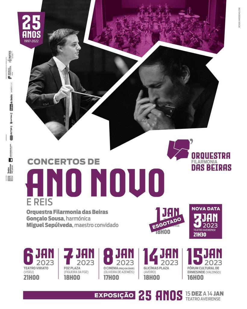 Para a Orquestra Filarmonia das Beiras nada faz mais sentido do que começar o novo ano com música! No já tradicional Concerto de Ano Novo e Reis, que constitui um dos momentos marcantes da temporada musical da orquestra, voltaremos a fazer ouvir, tal como em Viena, uma seleção de Valsas, Polcas e Marchas da família Strauss, e ainda obras de outros compositores que nos farão entrar o Novo Ano em ambiente festivo. Sob a direção do maestro convidado Miguel Sepúlveda (Vencedor do Prémio Jovens Músicos 2022), a Orquestra Filarmonia das Beiras, neste início de 2023, junta novamente um instrumento invulgar à Orquestra – a HARMÓNICA – apresentando um reportório para este instrumento, com o harmonicista Gonçalo Sousa, um músico versátil e também compositor, num espetáculo que promete ser único.